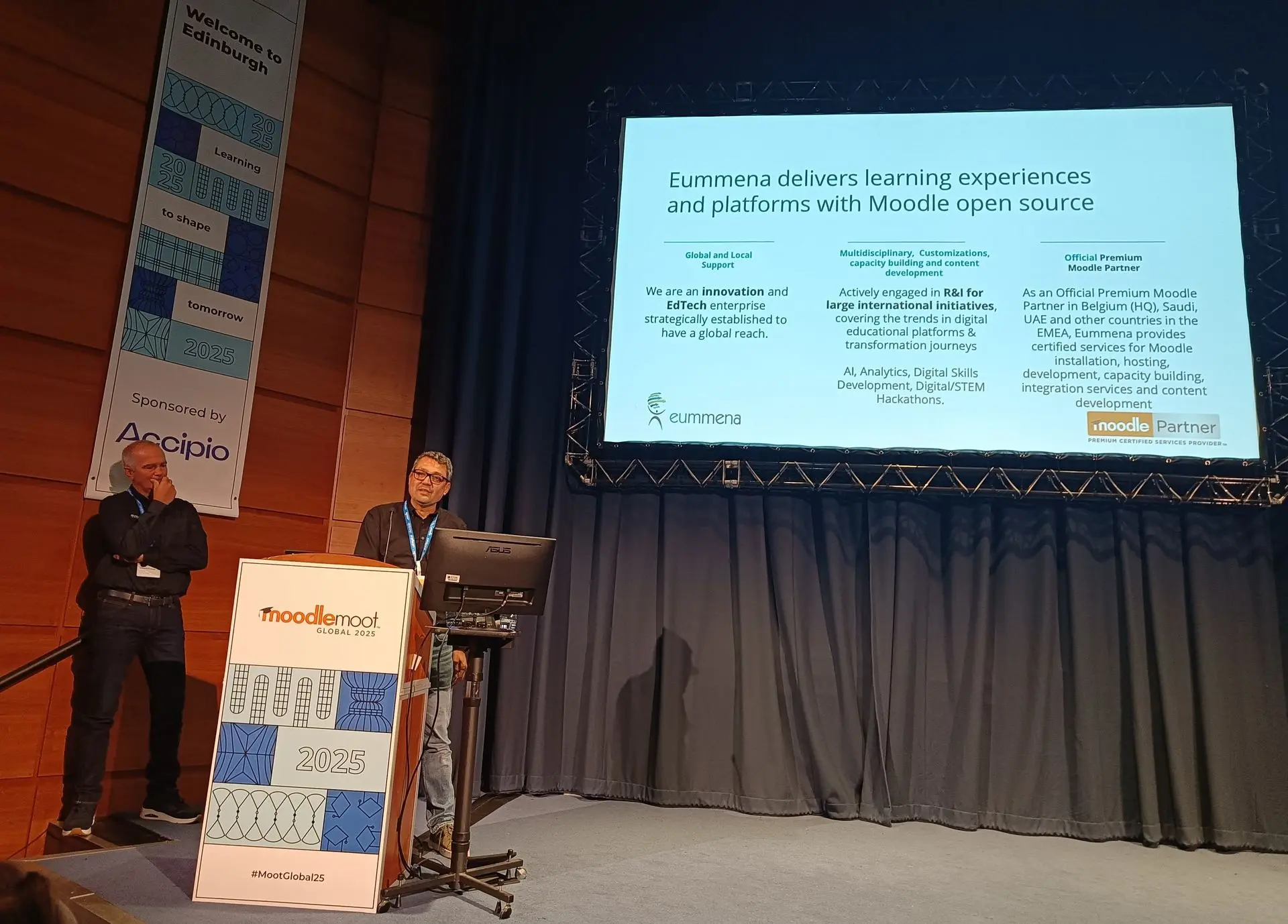 Following a short coffee break, part of the team attended Martin Dougiamas’ workshop on Moodle and AI — an inspiring session that was nothing short of brilliant. The other part of our Eummena team that attended the event, found its way into the Sidlaw room, where we watched some very interesting presentations. If I had to pick a personal favorite, it would have to be the “Bringing European history to life with Moodle: A free, multilingual, multimedia approach to learner engagement”.